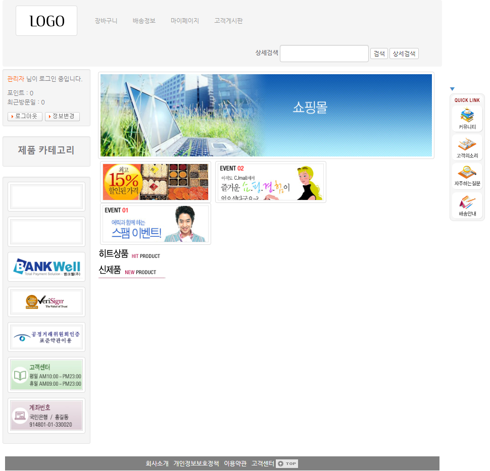이제 메인 페이지로 다시 접속해보시면 다음과 같은 화면이 나오면 정상적으로 wizmall 구축을 완료한 모습이 되겠습니다~