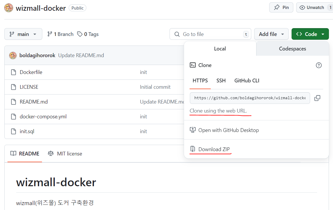 제가 직접 만든 docker image 를 간단한 명령어인 docker compose up 을 이용해서 한 방에 쉽고 빠르게 구축하기 위해서 아래 github repository를 다운로드 해봅시다~
